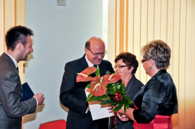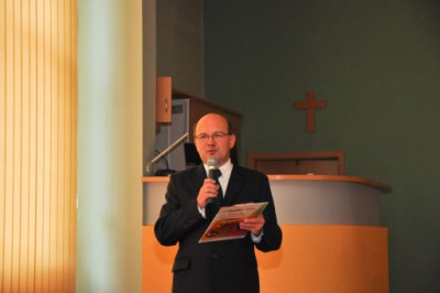 Uroczystości jubileuszowe rozpoczęła konferencja dla samorządowców, naszych sponsorów, darczyńców i wolontariuszy w dniu 25.10.2013 w sali konferencyjnej Urzędu Miasta w Kluczborku . Dziękujemy Panu Staroście Piotrowi Pośpiechowi za kwiaty i życzenia. Dziękujemy Panom Burmistrzom Jarosławowi Kielarowi i Andrzejowi Nowakowi oraz Przewodniczącemu Rady Miejskiej Kluczborka, Panu Januszowi Kędzi za życzenia oraz prezent w postaci 11 bardzo potrzebnych nam pulsoksymetrów. Dziękujemy Panu Burmistrzowi Janowi Leszkowi Wiąckowi za list z gratulacjami. Dziękujemy wszystkim Radnym i Burmistrzom Kluczborka za przekazany nam czek w wysokości 4600 zł. Dziękujemy Pani Grażynie Kowalik oraz Janowi Kowalikowi z firmy Wagrem za wzruszające życzenia i obecność z nami w tym dniu. Podczas tego spotkania mogliśmy przedstawić naszą historię, teraźniejszość oraz zabrać naszych Gości w podróż do przyszłości dzieląc się z nimi naszymi planami, związanymi głównie z prowadzoną przez nas społeczną inwestycją budowy hospicjum stacjonarnego w Smardach Górnych koło Kluczborka. Prelegentami tego dnia byli także prof. dr hab. Józef Binnebesel z Uniwersytetu Mikołaja Kopernika w Toruniu, który opowiadał nam o tanatopedagogice, jako elemencie kreowania idei opieki hospicyjnej. Natomiast doc. dr med. Zbigniew Bohdan z Hospicjum im. Ks. E. Dutkiewicza w Gdańsku prowadził nas śladami Mistrzów, jako podstawach duchowości hospicyjnej. W niezwykłą atmosferę walki Dobra ze Złem wprowadzili nas młodzi adepci sztuki pantomimicznej z Wielunia. Wam wszystkim bardzo dziękujemy.